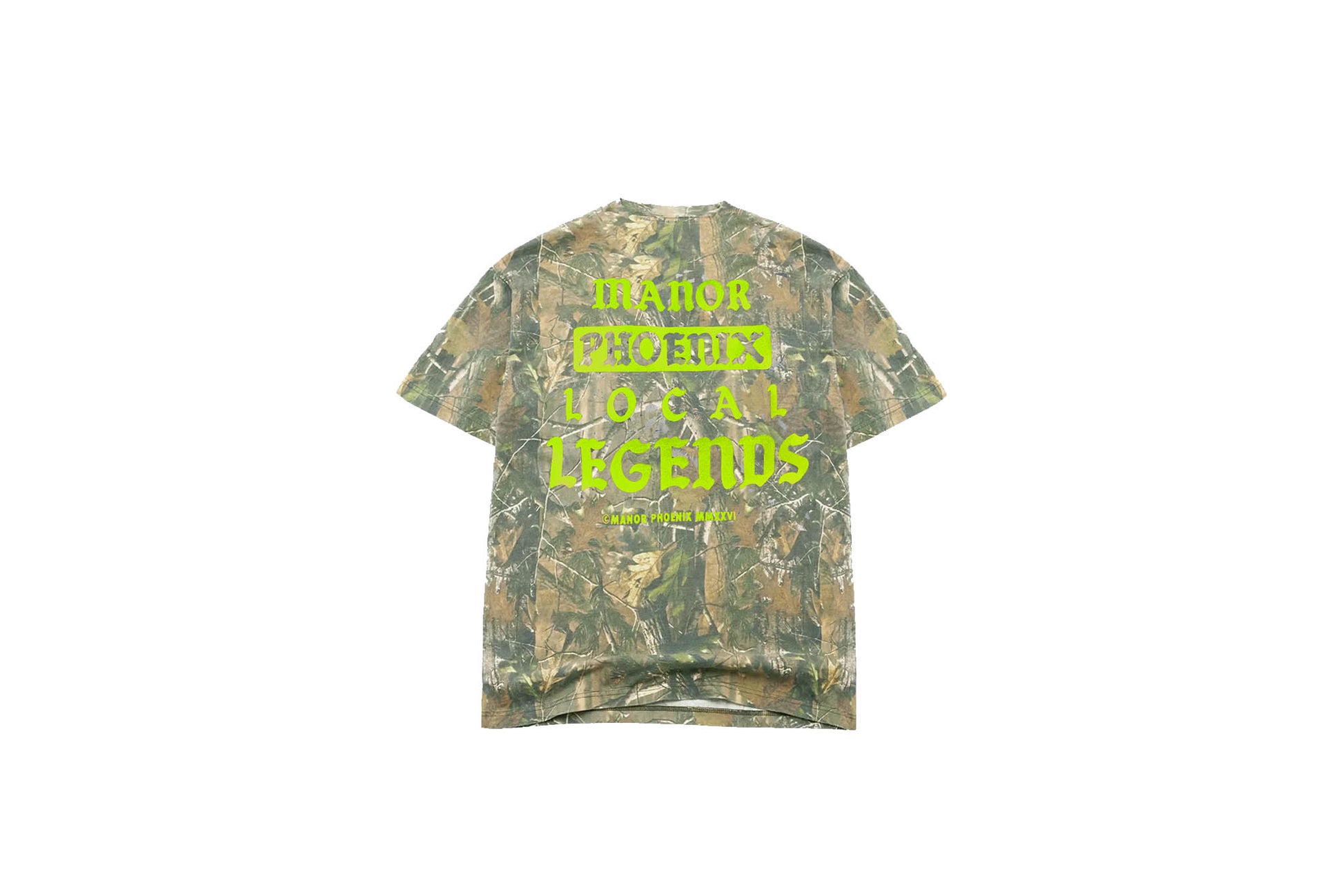 The Local Legends Camo Tee blends classic woodland camouflage with bold Phoenix attitude. Featuring a vivid blaze-orange “Manor Phoenix Local Legends” back print, this tee pays homage to the people who shape the city from the ground up. Cut from a soft, breathable cotton blend, it’s designed for all-day wear—whether you’re in the streets, at the shop, or posted up courtside.